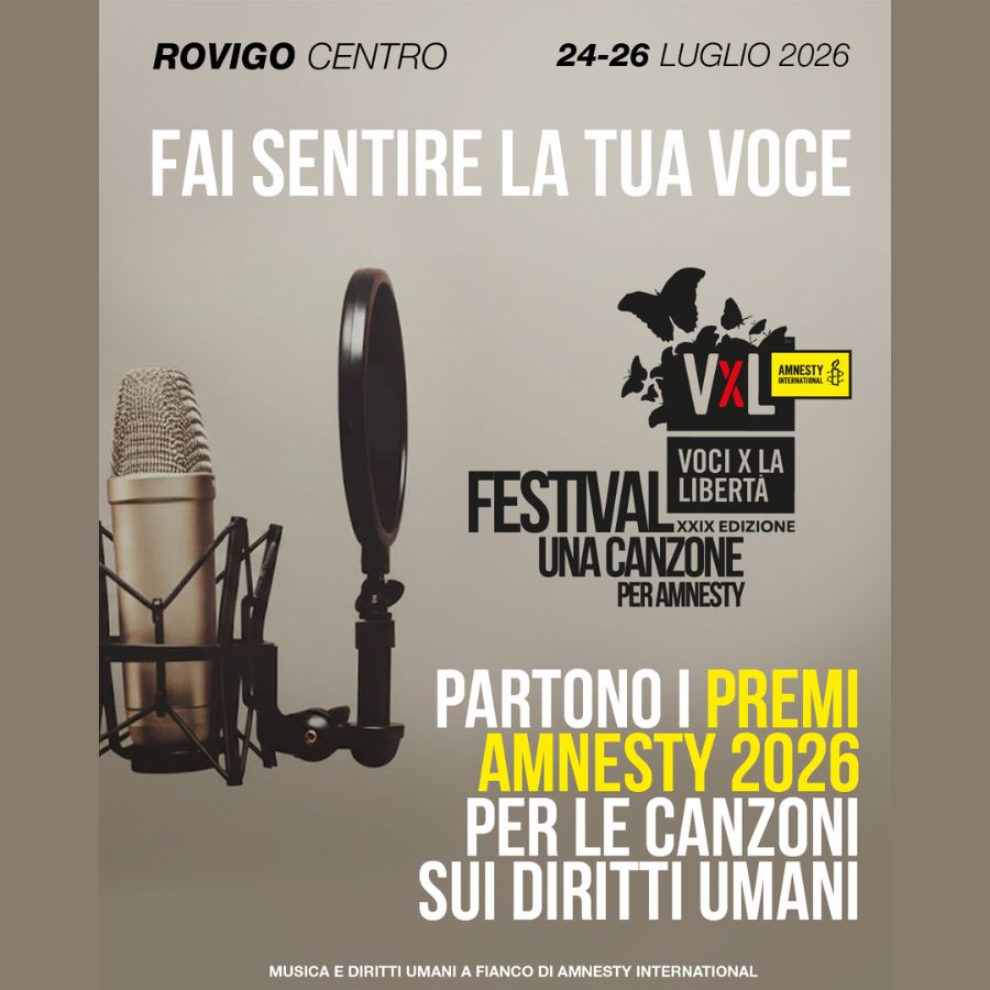 Al via la 29ª edizione di “Voci per la Libertà – Una canzone per Amnesty”, lo storico festival che celebra musica e diritti umani, con il lancio dei Premi Amnesty International 2026, che si articoleranno, come sempre, in due sezioni: quella per gli artisti big e quella per gli emergenti della musica italiana, quest’ultima sviluppata attraverso un bando di concorso.