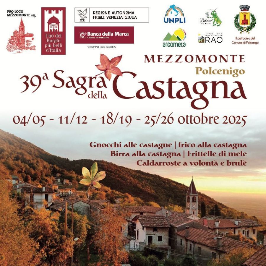 Nel pittoresco borgo di Mezzomonte, frazione di Polcenigo, la Sagra della Castagna si tiene durante tutti i fine settimana di ottobre.