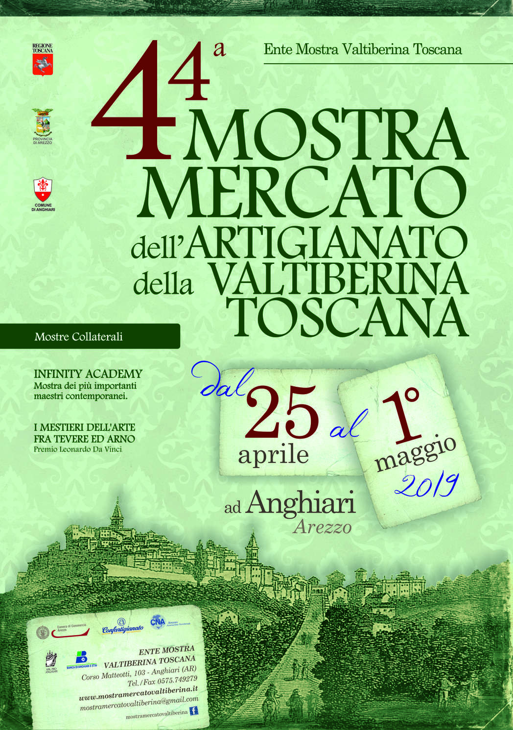 Come ogni anno il caratteristico centro storico di Anghiari (Arezzo) è pronto ad ospitare la Mostra Mercato dell’Artigianato della Valtiberina Toscana, mostra itinerante che propone ai visitatori e turisti una suggestiva passeggiata tra vicoli e piazzette, dove si apriranno per l’occasione le “botteghe” artigiane ed artistiche. Da 44 anni è questa la proposta vincente della principale manifestazione di Anghiari e della Valtiberina Toscana, che prenderà il via giovedì 25 aprile per concludersi mercoledì 1° maggio. Ubicata nei “fondi” disseminati nel borgo medievale, la Mostra Mercato richiama ogni anno numerosi visitatori a conferma della sua importanza nel settore dell’artigianato di qualità. Un’occasione per ammirare il meglio del “fatto a mano“, una vasta gamma di prodotti artigianali nei settori del legno e cuoio, tessuti e ferro battuto, ceramica e metalli preziosi, in un affascinante percorso che renderà ancora più gradevole una visita alla cittadina toscana particolarmente interessante anche sotto il profilo artistico-architettonico.
