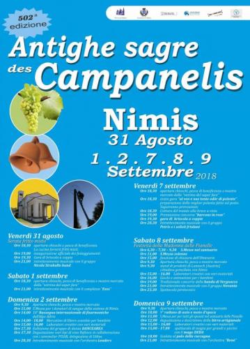 Dal 31 agosto al 2 settembre e dal 7 al 9 settembre 2018 si svolgono gli eventi della 502^ edizione dell’Antighe Sagre Des Campanelis di Nimis.