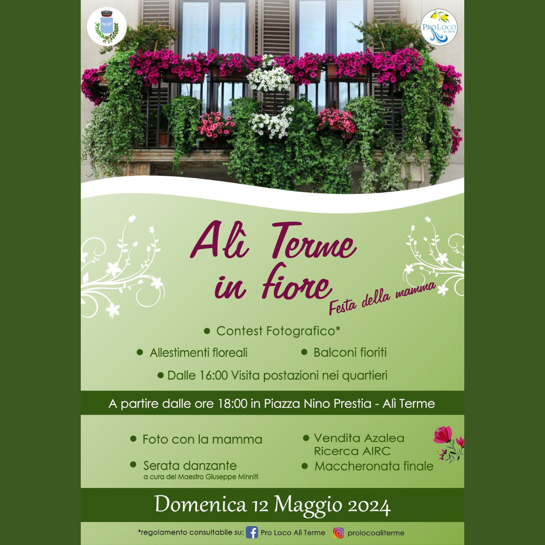 Anche per quest’anno la Pro Loco con il patrocinio del Comune di Alì Terme presentano Alì Terme in Fiore.