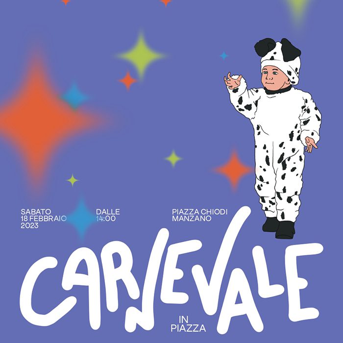 Sabato 18 febbraio, dalle ore 14.00 in piazza Chiodi, si festeggia il Carnevale! Scivoli, musica, crostoli e tanto divertimento assieme a Bruno Bergamasco con la partecipazione del Corpo Bandistico “N. Pastorutti” Manzano.