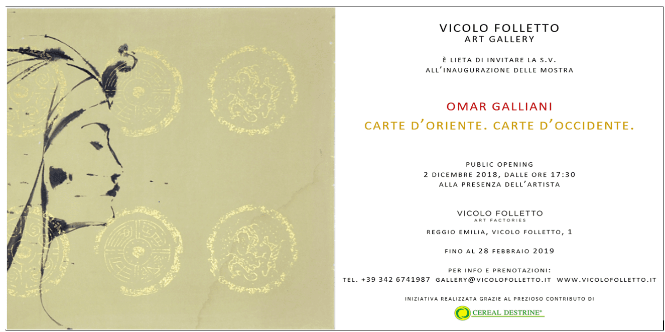 Vicolo Folletto Art Factories di Reggio Emilia presenta, dal 2 dicembre 2018 al 28 febbraio 2019, “Carte d’Oriente. Carte d’Occidente”, mostra che ricostruisce il rapporto tra Omar Galliani e l’Oriente attraverso una raccolta di opere su carta create negli anni Duemila, nel corso di ripetuti soggiorni in Cina, Corea, India e Vietnam. Dopo la recente donazione di un inedito autoritratto alle Gallerie degli Uffizi, museo fiorentino che custodisce la più grande collezione di autoritratti nel mondo, iniziata dal cardinal Leopoldo e proseguita dai Medici e dai Lorena fino ai giorni nostri, Omar Galliani torna a Reggio Emilia con un progetto teso ad illustrare il suo profondo legame con l’Oriente, fatto di ispirazione e sentimento. Il percorso della mostra raccoglie una ventina di opere ed una serie di fogli tratti da quaderni di viaggio. Disegni a matita, a carboncino e a inchiostro su carte di manifattura orientale, alcune delle quali particolarmente preziose, che raccontano le atmosfere, la fascinazione e gli incontri di quei viaggi. Molti dei lavori esposti sono stati presentati in precedenza solo in contesti museali e provengono direttamente dall’Archivio di Omar Galliani.