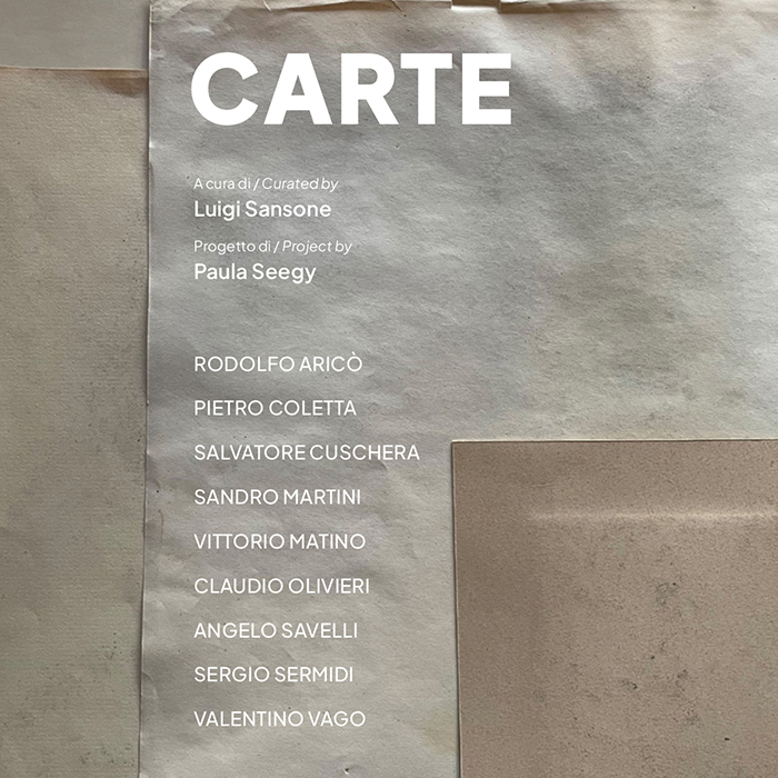 Con la collettiva “Carte”, a cura di Luigi Sansone, la Paula Seegy Gallery presenta una mostra che vede coinvolti importanti artisti legati all’astrattismo italiano: Rodolfo Aricò, Pietro Coletta, Salvatore Cuschera, Sandro Martini, Vittorio Matino, Claudio Olivieri, Angelo Savelli, Sergio Sermidi e Valentino Vago. In esposizione una selezione esclusiva di pezzi unici su carta, realizzati con svariate tecniche, che dagli anni ‘50 conducono fino alla contemporaneità.