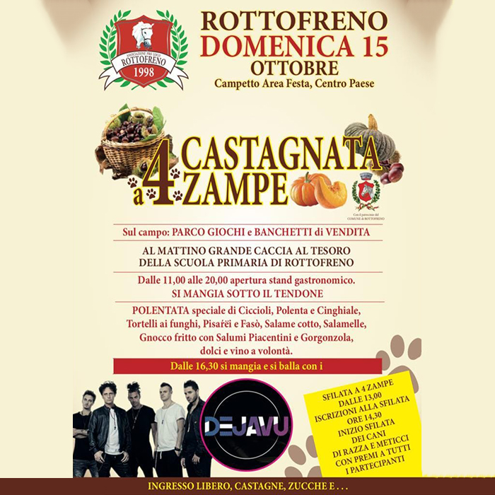 Arriva la Castagnata a 4 zampe di Rottofreno per farvi passare una giornata all’insegna di tradizione, buon cibo, amici a 4 zampe e tantissime specialità locali.