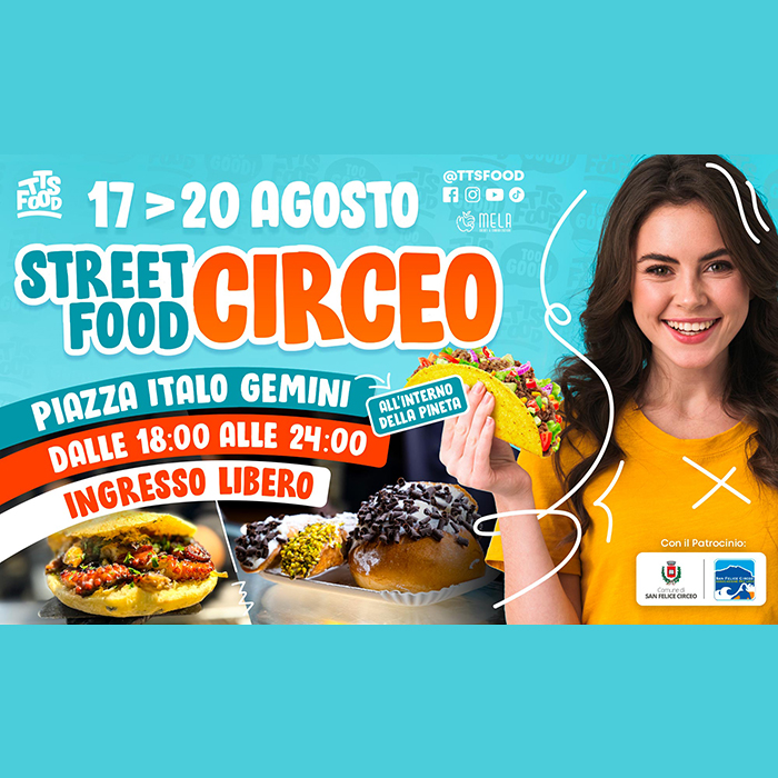 Una tappa che è diventata un classico del TTS FOOD, in cui ottimo cibo da strada, musica e divertimento si mescoleranno alle magiche notti estive. Immersa nella natura, a pochissimi passi dalla riva e ai piedi della Maga Circe, il Circeo Street Food ospiterà una selezione di 25 Street Chef posizionati lungo tutto il perimetro interno della pineta (Piazza Italo Gemini) che si trova nel cuore del paese.