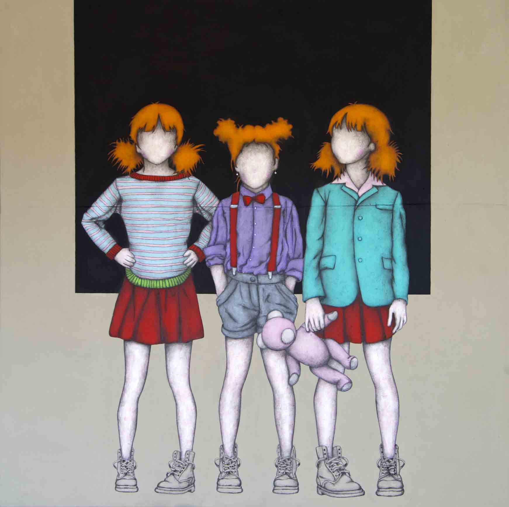 Nelle sue figure stilizzate, l’assenza dei tratti fisionomici descrive una condizione interiore piuttosto che un dato biografico. Le ragazze trasmettono un senso di leggerezza e allegria, anche dove convivono con elementi velatamente perturbanti come le finestre scure che fanno loro da cornice o le atmosfere notturne che connotano molti degli ambienti esterni. Sembra quasi che l’autore, anche nel titolo Con un Sorriso si Può, suggerisca di recuperare quello stato mentale infantile in cui speranza ed attesa diventano l’antidoto ad un’inquietudine latente.