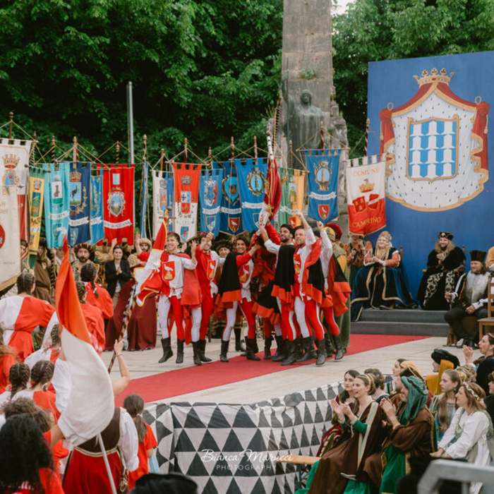 Un corteo di circa quattrocento persone in abiti di fine Quattrocento si sposta dalla Collegiata di San Venanzio fino alla Chiesa di Santa Maria per attendere i trenta ragazzi che “correranno alla spada“, l’abito premio per il primo arrivato. La squadra che avrà piazzato i suoi corridori nelle migliori posizioni si aggiudicherà il Palio. Le taverne ospitano poi la tradizionale festa a cui tutti partecipano.