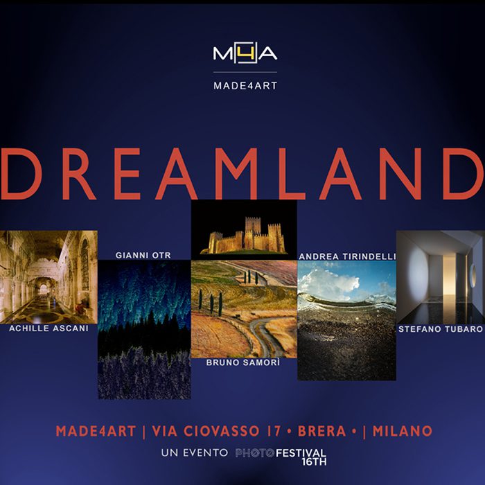 In occasione di Photofestival 2021, MADE4ART è lieto di presentare presso la nuova sede in Via Ciovasso 17 a Milano, nel cuore di Brera, un progetto espositivo dal titolo Dreamland, a cura di Elena Amodeo e Vittorio Schieroni, con opere degli artisti fotografi Achille Ascani, Gianni Otr, Bruno Samorì, Andrea Tirindelli, Stefano Tubaro.