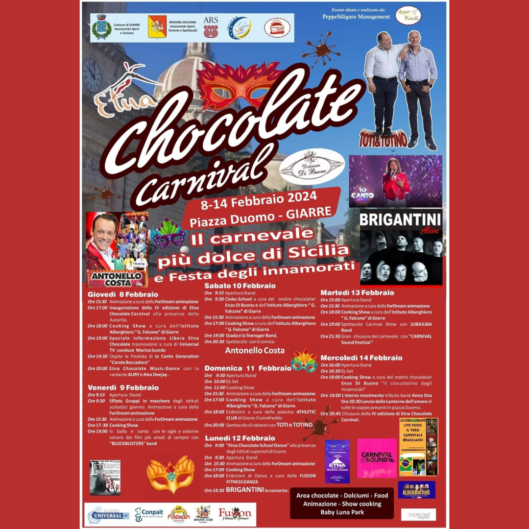 Etna Chocolate Carnival il carnevale più dolce di Sicilia e della Festa degli Innamorati a Giarre!