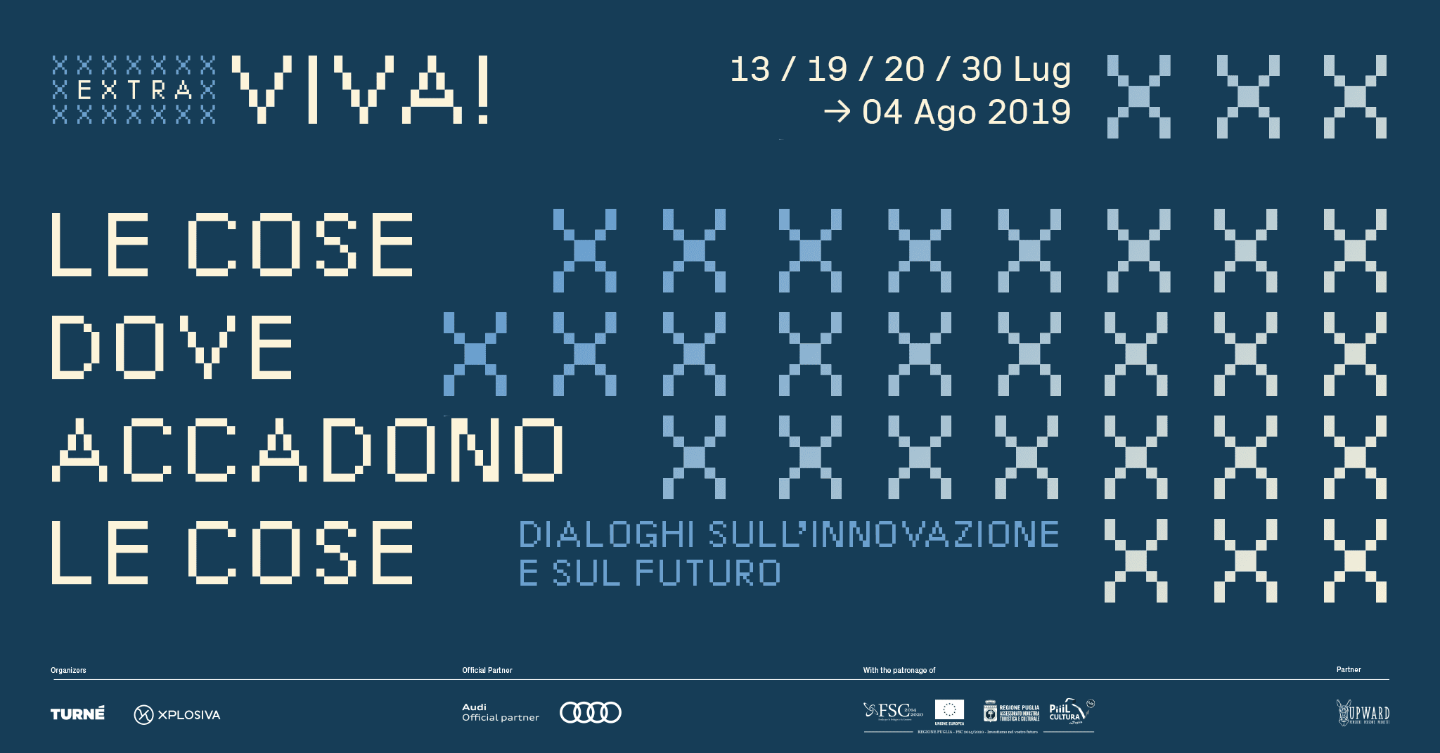 Extra VIVA! è lo spin off di VIVA! Festival: un format di incontri che intende affrontare il concetto di innovazione declinandolo su diversi temi. Per l’edizione 2019 sono previsti sette appuntamenti in quattro differenti week-end, dal 19 luglio al 4 agosto 2019.