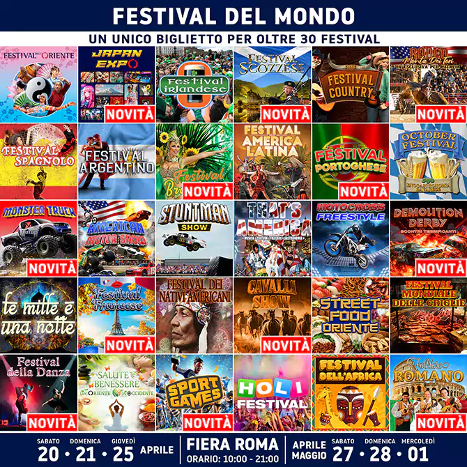 Un viaggio straordinario tra musica, cultura, arte, tradizioni, folklore, show, spettacoli e gastronomia in oltre 90.000 m² di fiera!