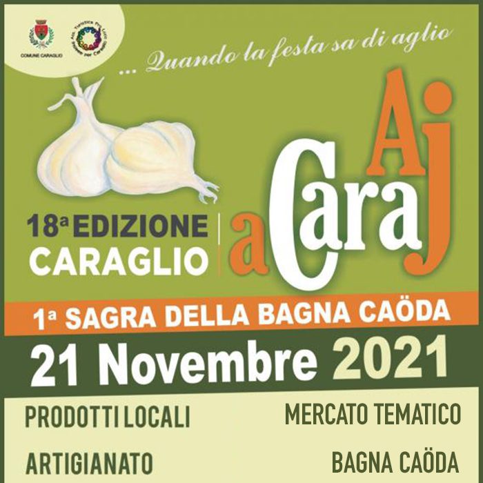 Domenica 21 novembre torna a Caraglio la XVIII^ edizione di Aj a Caraj, la manifestazione dedicata all’aglio, prodotto tipico di questa zona organizzata dall’Associazione Turistica Pro Loco Insieme per Caraglio in collaborazione con il Comune di Caraglio, il Consorzio e la Confraternita dell’Aglio.