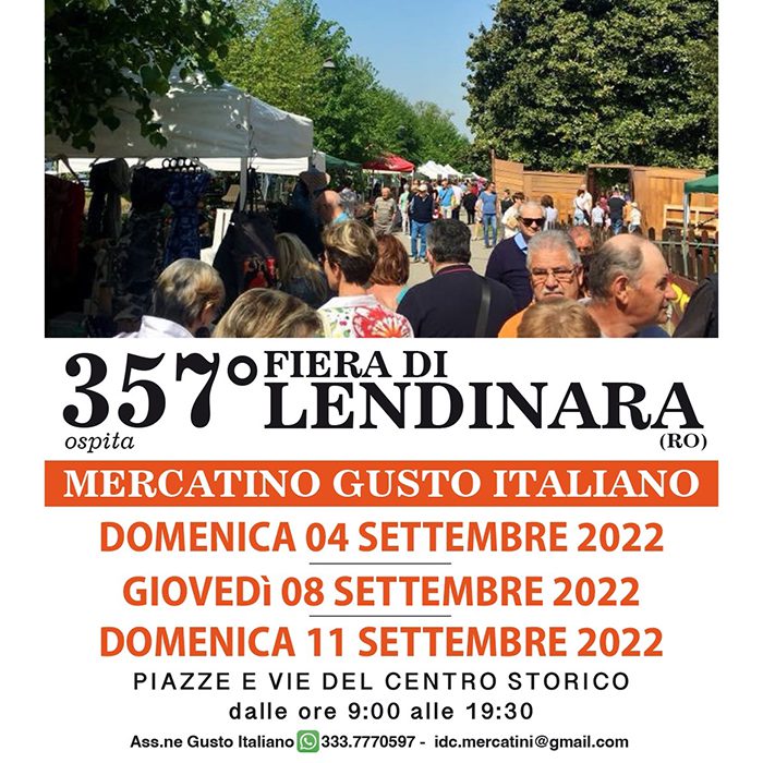 C’è tanta attesa e trepidazione, quest’anno, per la FIERA DI LENDINARA, quella della definitiva ripartenza. E’ la numero 357 e animerà Lendinara (RO) — nell’ambito del Settembre Lendinarese — con un lungo e ricco palinsesto dove nulla è lasciato al caso: tanti eventi, cultura, mostre, musica e giostre…