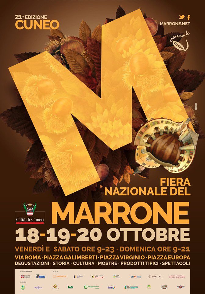 Per il 21° anno si celebrerà, dal 18 al 20 ottobre 2019, la Fiera Nazionale del Marrone a Cuneo, una delle più importanti rassegne enogastronomiche d’Italia e una vetrina unica delle eccellenze del territorio cuneese. All’evento parteciperanno inoltre centinaia di espositori provenienti dall’Italia e dall’estero, tutti attentamente selezionati in nome della qualità dei prodotti esposti. Oltre all’enogastronomia, la fiera offrirà ampio spazio all’artigianato d’eccellenza in collaborazione con Confartigianato Cuneo, a laboratori didattici realizzati sotto l’attenta regia di Coldiretti Cuneo, nonché iniziative culturali e turistiche, mostre e spettacoli. Venerdì 18 ottobre 2019, Sala San Giovanni in Cuneo ospiterà la cena di gala sua eccellenza il Marrone, con una degustazione guidata dal critico gastronomico Paolo Massobrio e da Mastri Birrai. Il ricavato della cena verrà devoluto a favore della Fondazione del nuovo Ospedale di Cuneo.