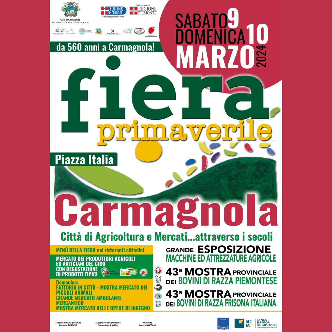 Sabato 9 e Domenica 10 Marzo ritorna la storica Fiera Primaverile di Carmagnola, tradizionale manifestazione dedicata all’agricoltura che quest’anno raggiunge la 560° edizione.