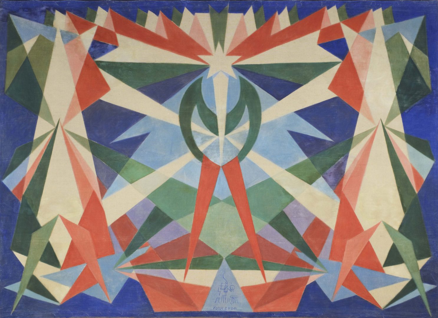 La più grande opera di Giacomo Balla arriva alle Gallerie d’Italia di Milano dal 9 aprile al 12 maggio 2019: si tratta di Genio Futurista, appartenente alla Collezione Biagiotti. Questo olio su tela d’arazzo venne esposto nel padiglione delle arti decorative dell’Esposizione di Parigi del 1925 e fu considerato, sia dalla critica che dall’artista stesso, l’opera cardine della sua partecipazione, la sua presenza è infatti altamente simbolica per l’origine e gli sviluppi dell’Art Déco. La mostra parigina sancì la larghissima e ormai capillare diffusione internazionale delle idee dei futuristi che, interpretando le teorie di Filippo Tommaso Marinetti, avevano già nel decennio precedente operato una vera e propria rivoluzione in campo ideologico e artistico e dato voce allo slancio che aprì la strada alle avanguardie internazionali. Il mito della velocità e del dinamismo si legò, in quell’epoca, a un nuovo concetto di arte, che i futuristi intendevano non più come semplice rappresentazione ma come azione concreta sul mondo che si traduce in un inno alla modernità, al progresso e alle macchine, e incarna la visione ottimista e progressista di inizio secolo. L’arazzo venne poi nuovamente esposto alla mostra degli Amatori e Cultori di Roma nel 1928, in posizione dominante al centro di una parete nella grande sala antologica dedicata al lavoro di Giacomo Balla, in cui l’artista presentò una selezione delle opere più importanti della sua carriera, a partire dal divisionismo di inizio secolo.