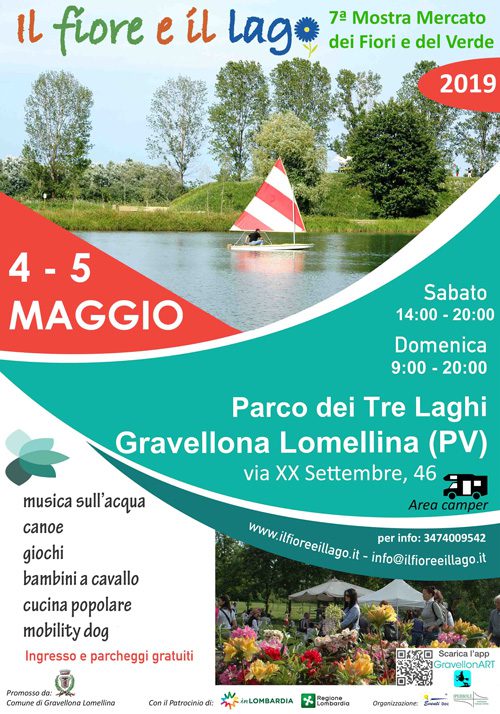 Sabato 4 e domenica 5 maggio 2019 si svolgerà la settima edizione della mostra-mercato Il Fiore e il Lago nel Parco dei Tre Laghi a Gravellona Lomellina (Pavia), paese d’arte e “paese dipinto di Lombardia” vicino a Vigevano ed a pochi chilometri da Pavia, Novara, Mortara, Vercelli, Milano. La kermesse è un evento molto ricco di attrattive naturali, paesaggistiche e culturali, come è ricca ed originale la cittadina che lo ospita tra cascine e risaie, dove il relax, l’arte, la natura e il buon cibo regnano sovrani. La manifestazione, che ad ogni edizione accoglie migliaia di visitatori, si svolge nell’originale paese d’arte, fantasia e creatività di Gravellona Lomellina ed è ambientata nell’oasi naturale di 30 ettari del Parco dei Tre Laghi.