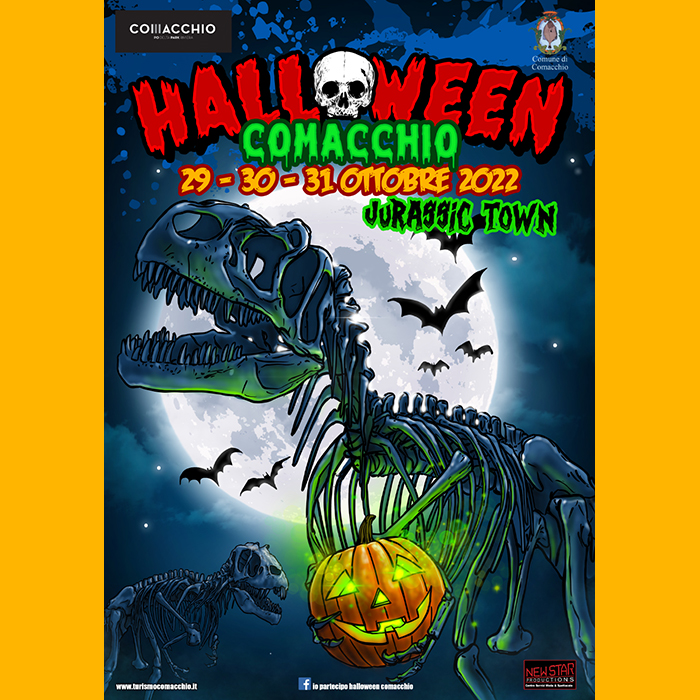 Comacchio “Halloween 2022” si trasformerà in una “Jurassic Town”: sabato 29, domenica 30 e lunedì 31 Ottobre 2022 si festeggia la notte più spaventosa dell’anno! Organizzato dal Comune di Comacchio e New Star Production, Comacchio, la “capitale” del Delta del Po ferrarese, si trasformerà nella “Città di Halloween”. Il programma ufficiale è ricco di appuntamenti per bambini e adulti a partire dal primo pomeriggio fino a tarda sera.