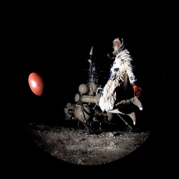 La fantastica ricostruzione qui prodotta è un invito per lo spettatore a rivivere quel momento irripetibile per tuffarsi nello spazio profondo, esplorarlo e lasciare una traccia del proprio passaggio sulla superficie lunare. L’installazione prevede l’esposizione di 6 immagini fotografiche, cinque provenienti dalla spazio, riprese al momento del ritrovamento del misterioso uovo e durante il suo trasporto nel modulo lunare, e una dell’uovo sulla terra dove, fuggito alle analisi di laboratorio, è andato a ricongiungersi con l’ambiente naturale terrestre. Le sale della Black Room saranno illuminate da una lampada stroboscopica che riprodurrà l’effetto di assenza di gravità dello spazio, migliaia di piccoli palloncini bianchi sul terreno saranno mossi al passaggio dei visitatori alzandosi in volo come polvere lunare, mentre sul fondo in lontananza si vedrà il luminoso sorgere del pianeta terra. L’uovo rosso apparirà flottante in assenza di gravità esattamente come fu ritrovato nel lontano 1970. Un invito a rivivere quel momento irripetibile per tuffarsi nello spazio profondo, esplorarlo e lasciare una traccia del proprio passaggio sulla superficie lunare.