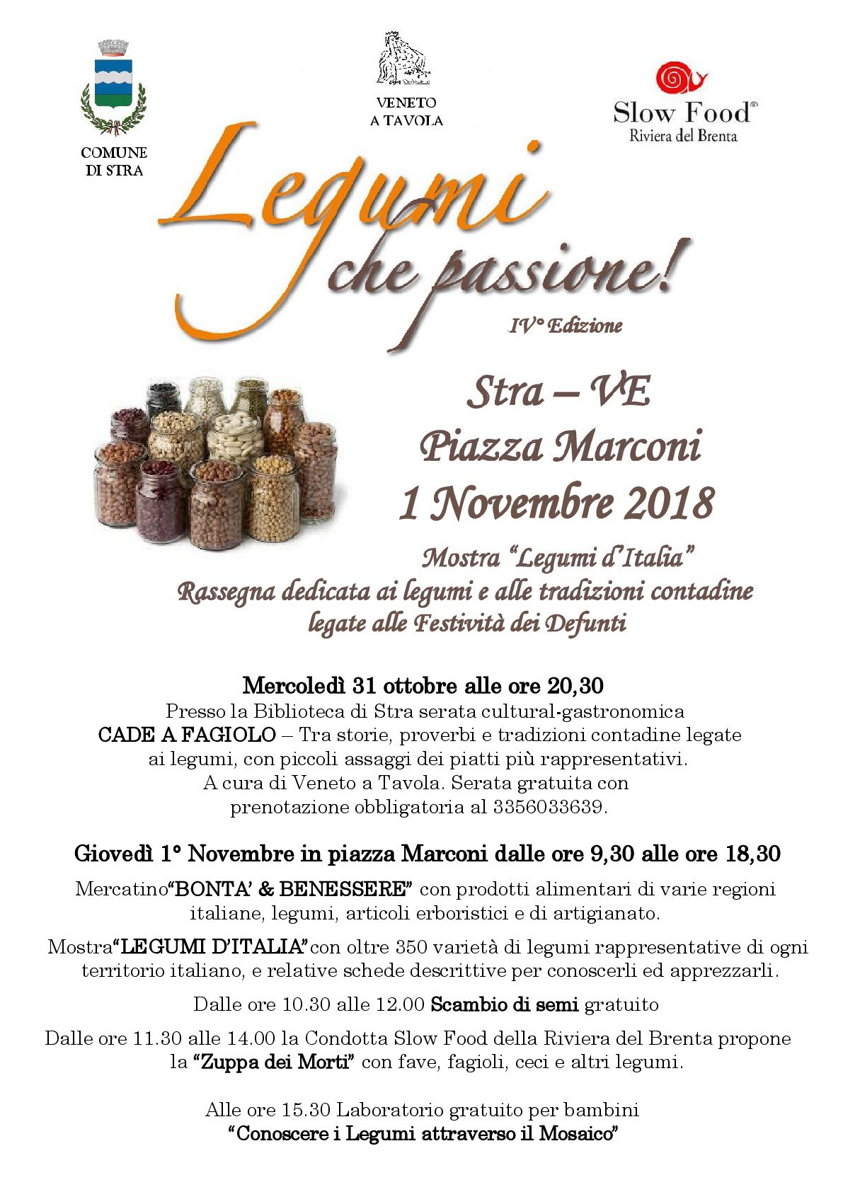 Mercoledì 31 ottobre alle 20:30 serata cultural-gastronomica “CADE A FAGIOLO” presso la Biblioteca di Stra, tra storie e tradizioni contadine legate ai legumi, con piccoli assaggi dei più rappresentativi e simbolici. A cura di Veneto a Tavola, ingresso gratuito con prenotazione obbligatoria.