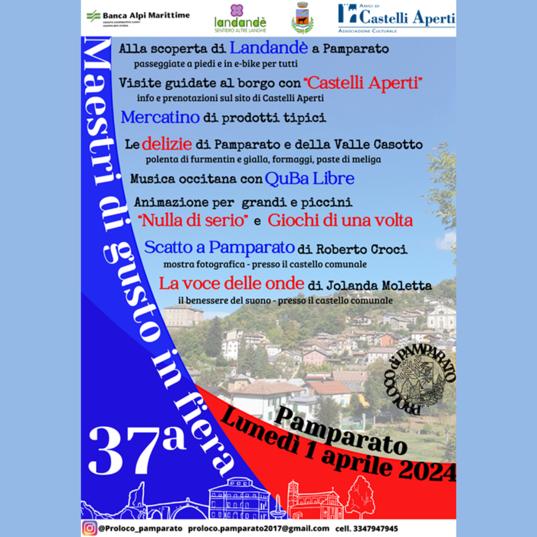 Tornano a Pamparato i Maestri di Gusto in Fiera: mercatino di prodotti tipici, musica, animazione, visite guidate e tutte le delizie di Pamparato.