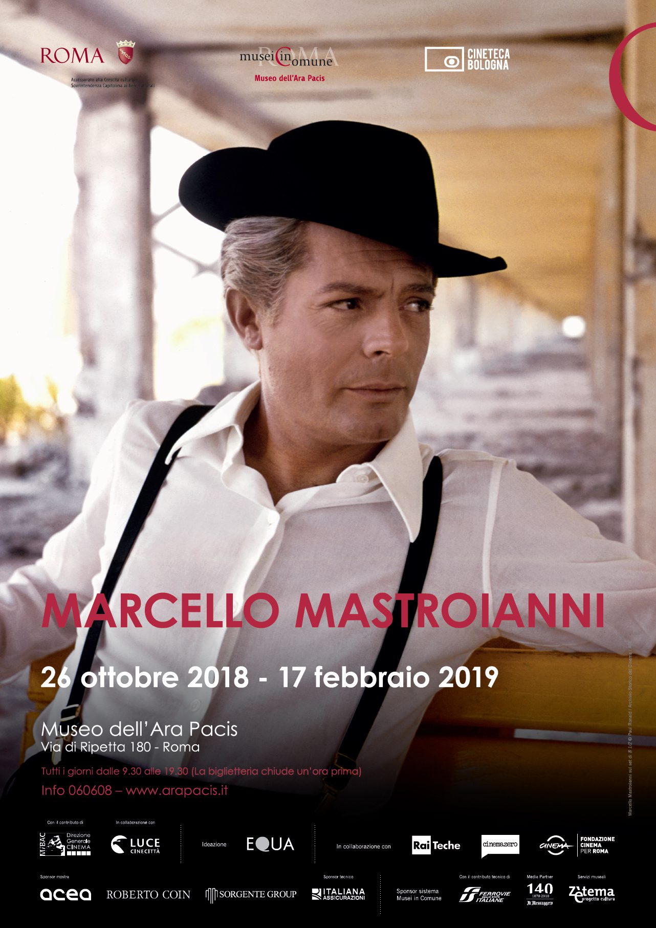 “C’è ancora molto da scoprire di Marcello – racconta il curatore Gian Luca Farinelli – e per andare a fondo nella scoperta dobbiamo tallonare la sua filmografia, perché rappresenta lo specchio della sua stessa vita”. Tutta la carriera e la vita di Marcello Mastroianni saranno raccontate attraverso i suoi ritratti più belli, cimeli e tracce dei suoi film e dei suoi spettacoli; la mostra avvicenderà immagini e racconti immergendo lo spettatore in quello che è stato ed è ancora il volto più conosciuto del cinema italiano. L’esposizione, promossa da Roma Capitale, Assessorato alla Crescita Culturale – Sovrintendenza Capitolina ai Beni Culturali, è coprodotta e curata dalla Cineteca di Bologna, con il sostegno del Ministero per i beni e le attività culturali e dell’Istituto Luce Cinecittà; i servizi museali sono di Zètema Progetto Cultura e il coordinamento organizzativo è a cura di Equa di Camilla Morabito.
