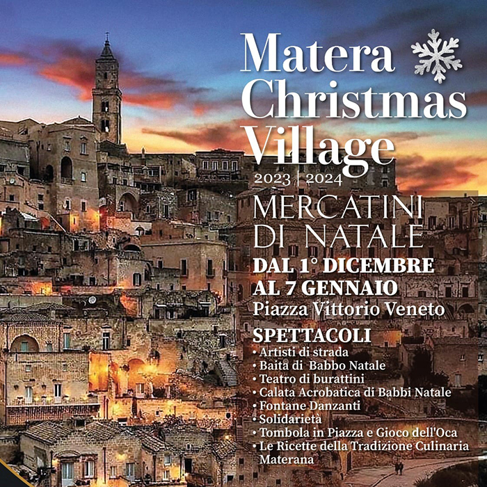 Dal 1 Dicembre al 7 Gennaio nella splendida cornice di Piazza Vittorio Veneto della bellissima città di Matera vi aspettano i caratteristici Mercatini di Natale: uno spettacolo di luci, colori, sapori ed emozioni uniche.