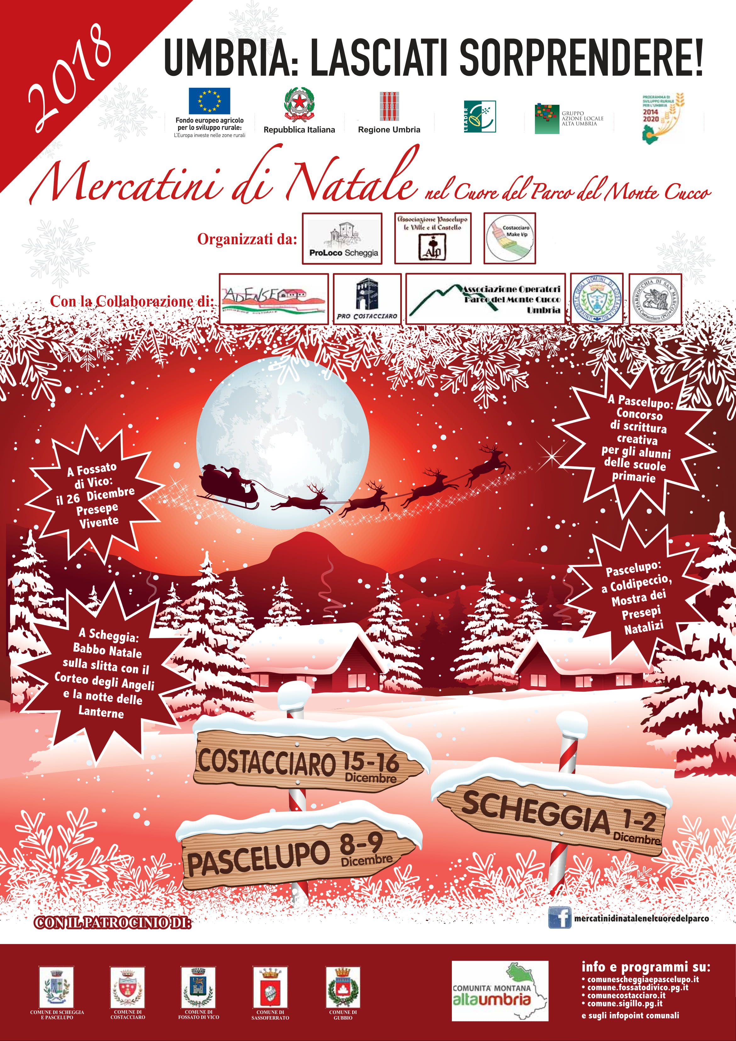 Sabato 8 e domenica 9 dicembre le Cantine dell’Antico Castello di Pascelupo (Perugia) ospiteranno le caratteristiche e coloratissime bancarelle del Mercatino di Natale. Per due giorni le vie del borgo saranno animate da suoni, colori, profumi e goloserie per tutti i gusti. Domenica 9 dicembre saranno premiate le tre migliori opere del concorso di Scrittura Creativa dedicato agli alunni e alunne della Scuola Primaria e la migliore bancarella dei Mercatini. In contemporanea a Coldipeccio, dall’8 dicembre sarà aperta ai visitatori la Mostra dei Presepi, esposti all’interno degli antichi rustici del pittoresco paesino.
