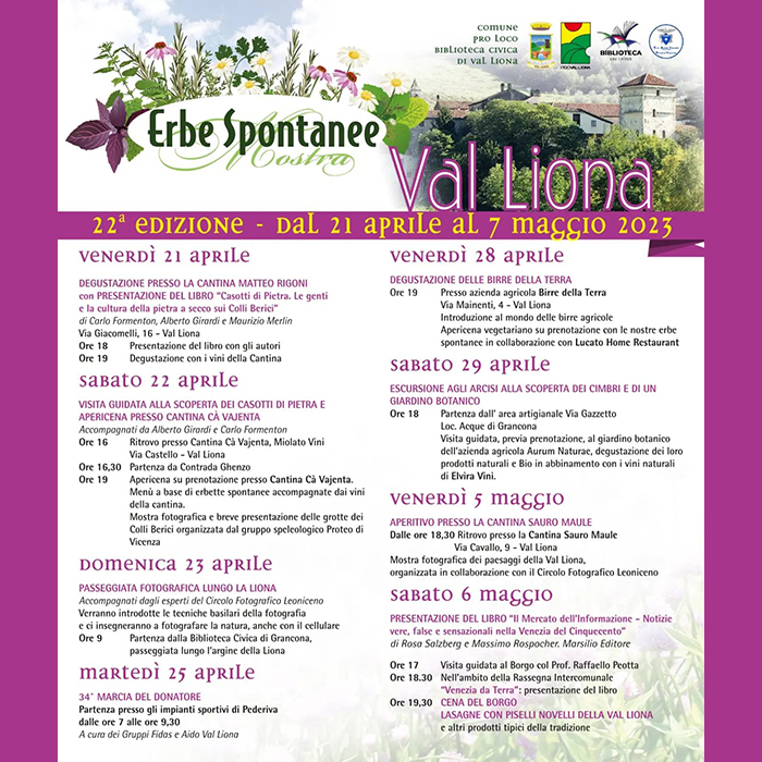 Torna la Mostra delle Erbe Spontanee, dei prodotti agroalimentari e artigianali in Val Liona, giunta quest’anno alla XXII edizione.
