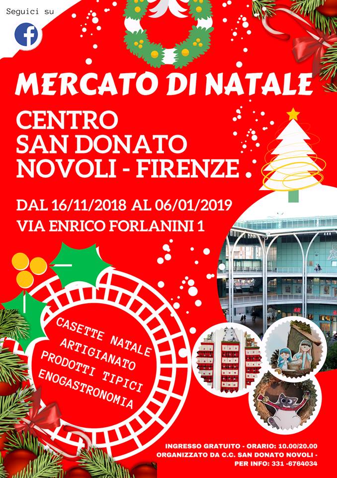 Al centro commerciale San Donato Novoli di Firenze si festeggia in grande stile con tante casette di Natale, mercatino, spettacoli, artigianato, area bimbi e prodotti enogastronomici. L’evento si svolgerà tutti i giorni dal 16 novembre al 6 gennaio, con orario continuato 10:00-20:00. Ingresso gratuito.