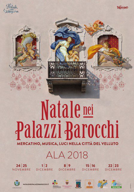 La manifestazione Natale nei Palazzi Barocchi, promossa dal Comune di Ala (Trento), è pronta ad accogliere il pubblico per cinque weekend nei giorni 24-25 novembre, 1-2 dicembre, 8-9 dicembre, 15-16 dicembre, 22-23 dicembre. I palazzi di maggior pregio si apriranno ai visitatori per accogliere gli artigiani del Mercatino di Natale, con manufatti originali realizzati nei diversi materiali tradizionali come carta, ceramica e legno, i tessuti lavorati e le decorazioni natalizie, i gioielli e gli oggetti di design, originali idee regalo per il Natale. Ogni weekend nuovi espositori si alterneranno con i loro prodotti.