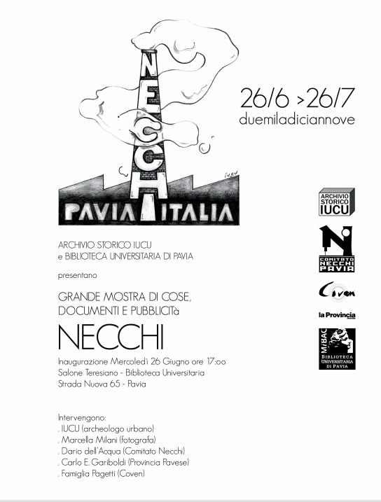 La mostra Necchi Pavia Italia, in programma presso la Biblioteca Universitaria di Pavia dal 26 giugno al 26 luglio 2019, è una storia vera narrata per immagini e cose perché le immagini sono memoria pura e le cose, anche quando diventano anacronistiche e perciò “inutili”, assumono forme familiari e nostalgiche riportando alla mente gesti di una lontana quotidianità. Nelle vetrine del Salone Teresiano sfileranno documenti, oggetti, fotografie e testimonianze di una delle più straordinarie realtà industriali della città lombarda, la NECCHI, che per molti pavesi è stata parte integrante della propria vita. I materiali sono per la maggior parte di IUCU, con molti libri e giornali della Biblioteca Universitaria di Pavia e alcune magnifiche foto di Marcella Milani. La NECCHI era un “marchio“, ora un “brand“. Quando c’erano i “marchi”, dietro le aziende c’erano le persone e il nome di un’azienda era il cognome di un Uomo, non di una multinazionale. In un’epoca in cui le famiglie diventavano aziende e davano da lavorare ai loro vicini di casa, la fiducia si guadagnava con una stretta di mano e la pubblicità era solo un modo per arrivare a più persone possibili e non per raggirare il consumatore. La mostra racconterà con la leggerezza della passione e la concretezza delle immagini e delle cose l’uomo Vittorio e l’azienda Necchi, ovvero Vittorio Necchi: un Uomo e la sua Azienda. Saranno infatti visibili molte pubblicità Necchi di diverse epoche, documenti di vario genere e oggetti introvabili.
