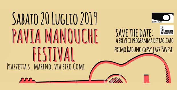 Sabato 20 luglio 2019 Sottovento e Liberi Saperi organizzano la prima edizione del Pavia Manouche Festival, il primo Festival pavese dedicato al Gypsy Jazz e al Manouche con concerti, jam session, esposizioni di liuteria e lezioni gratuite di danza Lindy Hop. Il genere si ispira allo stile musicale del leggendario chitarrista jazz vissuto nella Parigi degli anni 30 e 40, Django Reinhardt. Egli fu, infatti, il primo musicista in grado di fondere elementi jazzistici con sonorità gitane e popolari francesi dando vita ad un suono passionale con improvvisazioni piene di vitalità e fantasia. Nella cornice della splendida piazzetta San Marino, in via Siro Comi, sarà possibile rivivere le atmosfere dei cafè parigini, delle sale da ballo e dei cabaret russi degli anni ’30-’40. Con questa manifestazione gli organizzatori celebrano anche la fusione tra culture differenti capaci di dar luogo a miscele di un’originalità e di un fascino irresistibili.