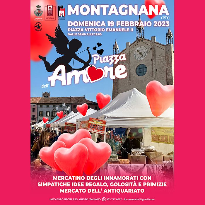 Piazza dell’Amore: mercatino degli innamorati, simpatiche idee regalo, golosità, primizie e mercato dell’antiquariato.