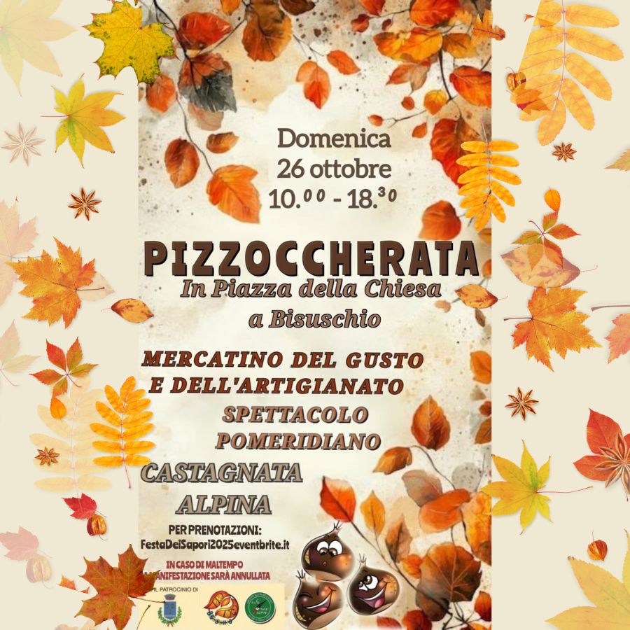 DOMENICA 26 OTTOBRE dalla mattina alla sera PIZZOCCHERATA in piazza, mercatini dell’artigianato, intrattenimenti e la castagnata con il gruppo Alpini Bisuschio (loro saranno già attivi dal sabato pomeriggio davanti al Municipio).