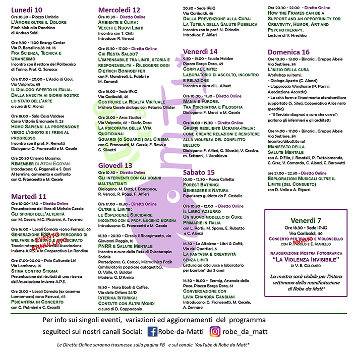 Robe da Matt* è la settimana della Salute Mentale a Torino, l’orgoglio di Essere Matti: conferenze, laboratori, spettacoli, movimento fisico e mentale.