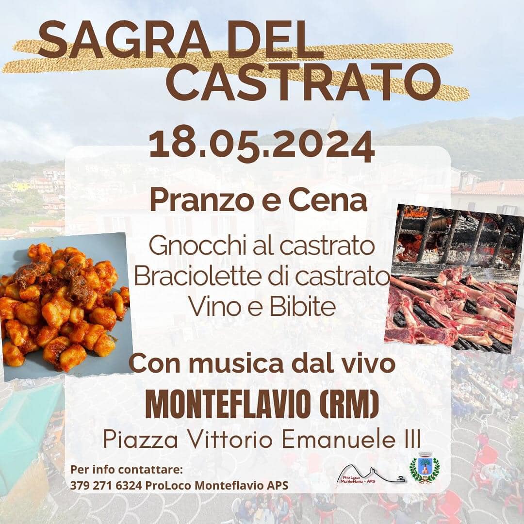 A Monteflavio il 18 maggio torna la Sagra del Castrato. Un’occasione per trascorrere una giornata in compagnia, all’insegna del buon cibo nel borgo storico della Sabina romana.