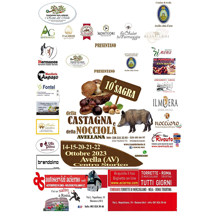 Grazie a tutti gli artigiani, i rivenditori di prodotti tipici locali, i ristoratori che aderiscono alla decima edizione della Sagra della Castagna e della Nocciola Avellana, quest’anno sarà tutta una sorpresa!