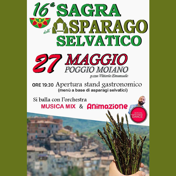Arriva la sedicesima edizione della Sagra dell’Asparago Selvatico di Poggio Moiano: stand gastronomico con menù a base di asparagi selvatici, animazione, musica e balli!