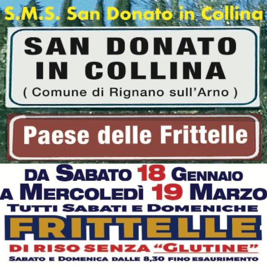 Da 18 gennaio al 19 marzo nuovo appuntamento a San Donato in Collina, sulle colline di Bagno a Ripoli (FI), con le gustose frittelle preparate presso il locale S.M.S. ogni fine settimana dall’inizio del periodo invernale fino a San Giuseppe.