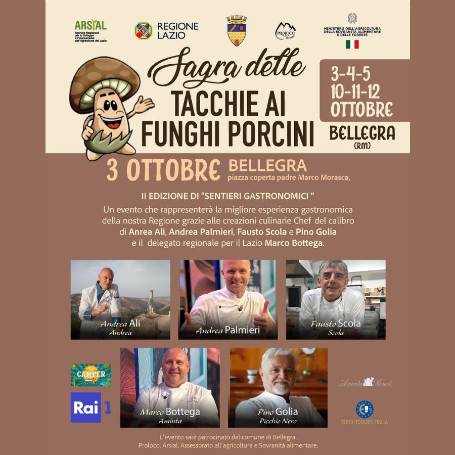 L’evento sarà patrocinato dal comune di Bellegra, Proloco, Arsial, Assessorato all’agricoltura e Sovranità alimentare.