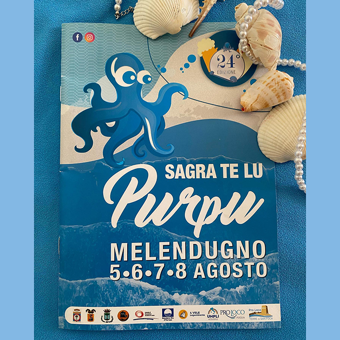 La Sagra te lu Purpu è uno degli eventi più attesi dell’estate salentina. Appuntamento a Melendugno (5-8 agosto), il polpo, prodotto tipico della zona, viene cucinato in ogni maniera.
