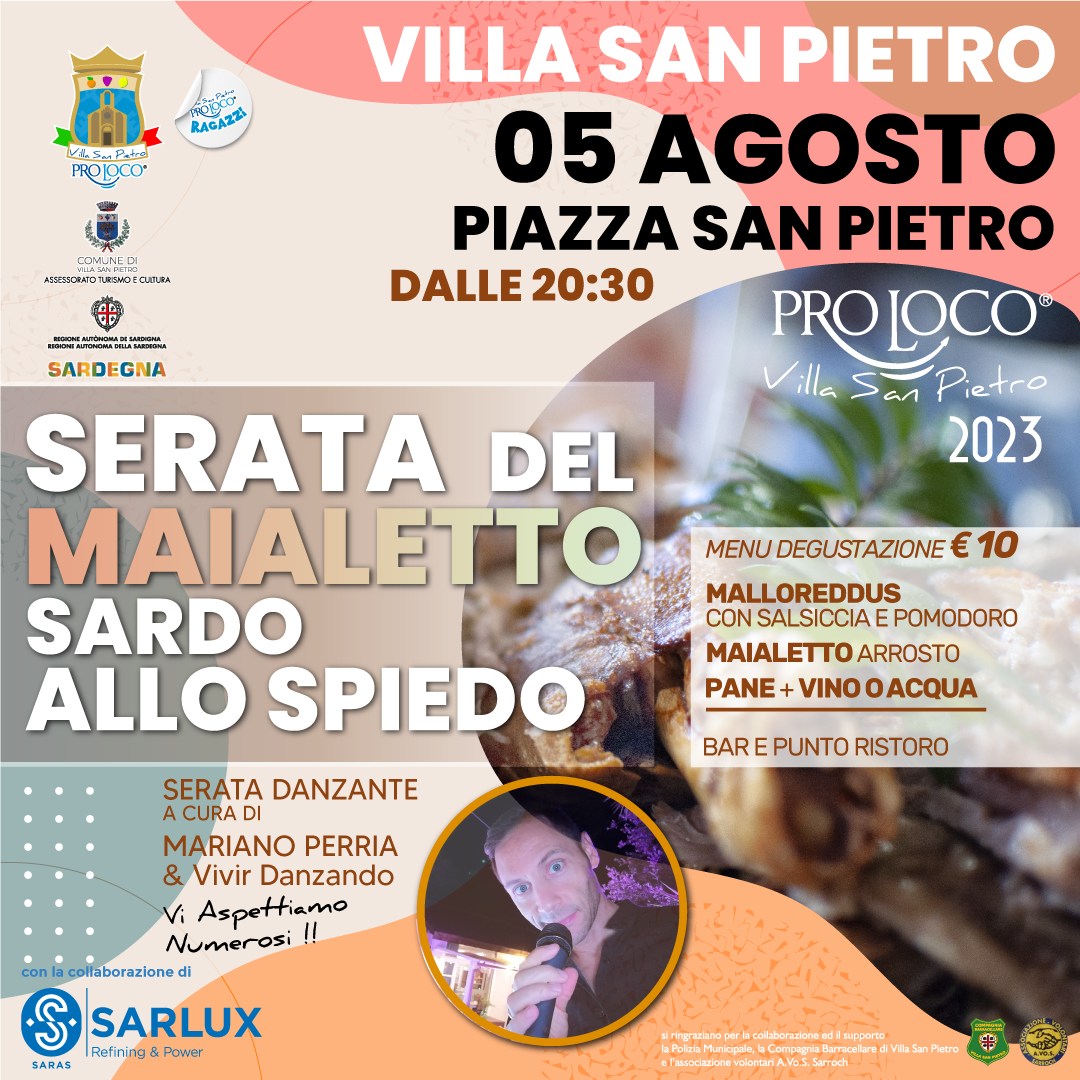 Dopo il successo dell’ultima serata e viste le tante presenze, a grande richiesta la Pro Loco di Villa San Pietro ha organizzato una seconda Serata del Maialetto Sardo allo Spiedo!
