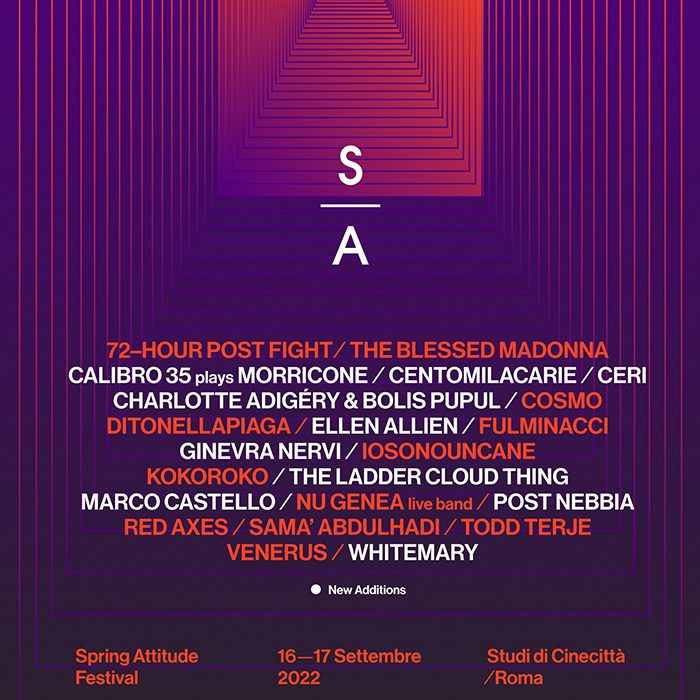 È arrivato il momento di riavviare il futuro. Di ripensarlo e ridisegnarlo attraverso la musica. Spring Attitude Festival torna il 16 e 17 Settembre 2022 negli Studi di Cinecittà.