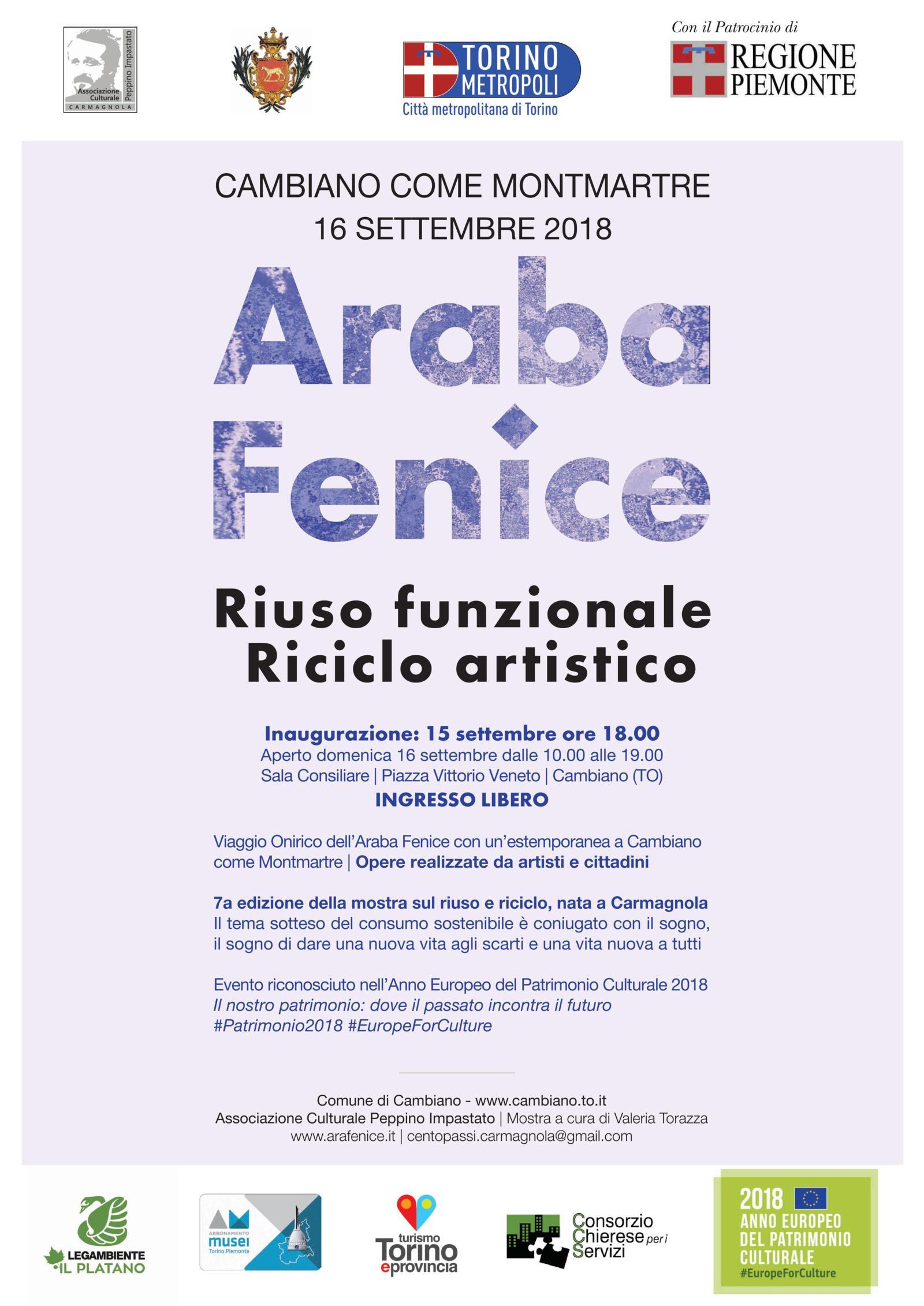 L’Araba Fenice: Riuso Funzionale, Riciclo Artistico ha ottenuto il logo dell’Anno Europeo del Patrimonio Culturale per l’approccio inclusivo, le finalità di sviluppo sostenibile e le sinergie tra patrimonio culturale e sensibilizzazione in materia di ambiente.
