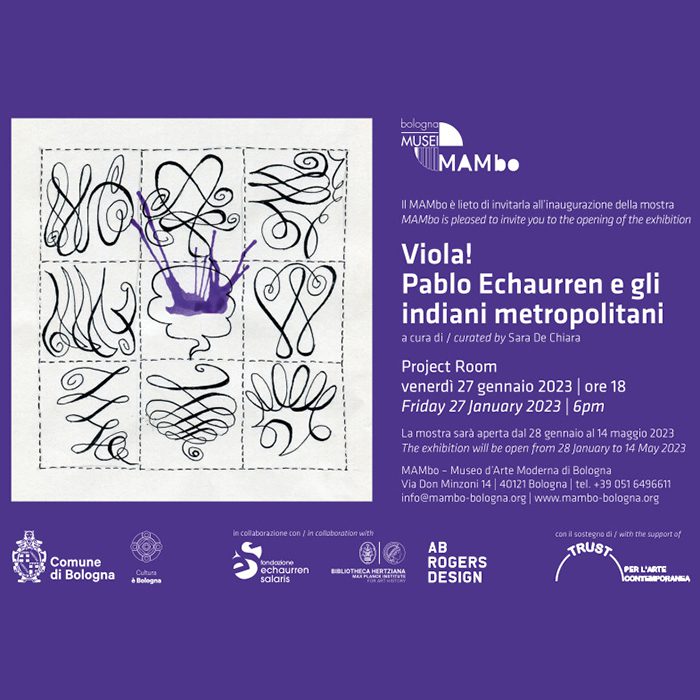 La mostra offre l’occasione di approfondire per la prima volta il rapporto di Pablo Echaurren (Roma, 1951) con il contesto bolognese, attraverso una selezione di opere realizzate tra il 1977 e il 1978, di pagine di Lotta Continua, di collage, fanzine e illustrazioni ispirate agli avvenimenti e alla poetica del Settantasette. Il percorso espositivo include un gruppo di “quadratini”, realizzati nella prima metà degli anni Settanta, la cui produzione è stata abbandonata proprio dopo gli avvenimenti di quell’anno così cruciale per Bologna.